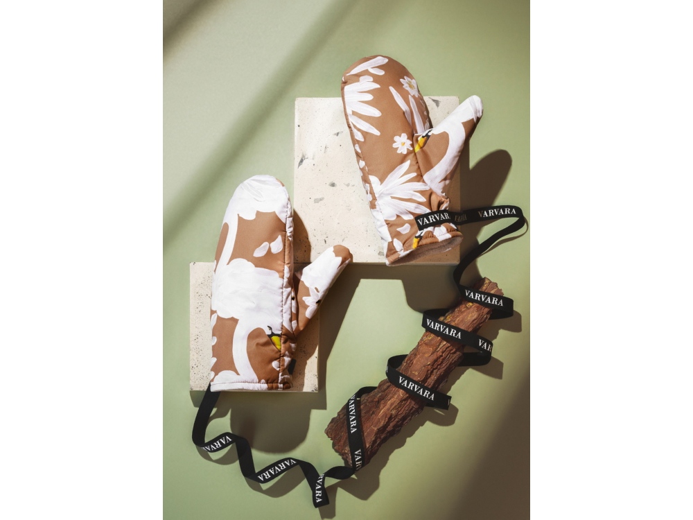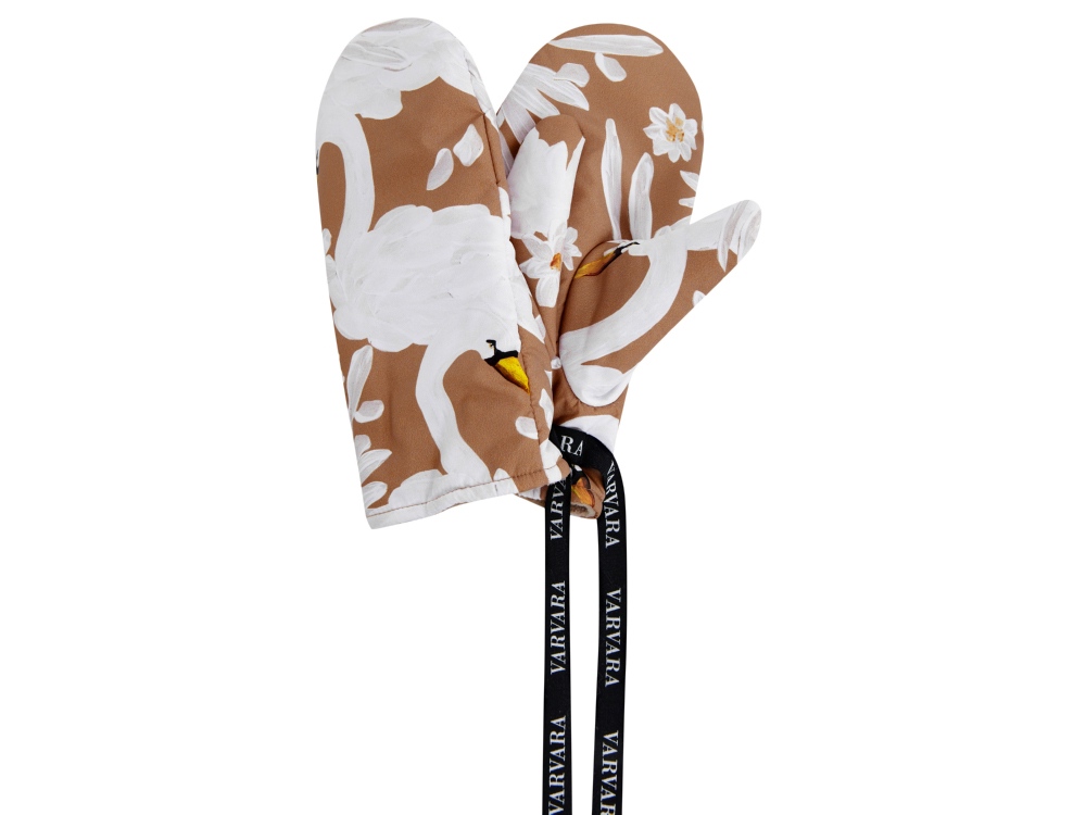 Верхняя ткань выполнена из непромокаемой курточной ткани, внутри флисовый подклад и утеплитель - холлофайбер. Температурный режим до -20 градусов. Варежки на ленте, как в детстве.