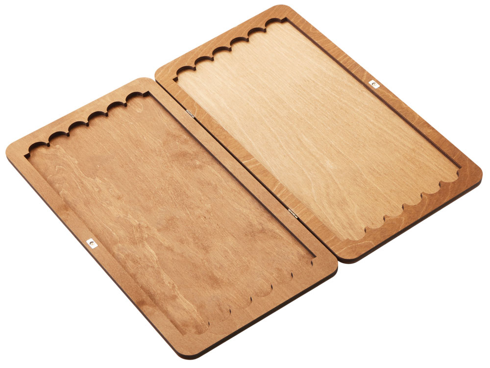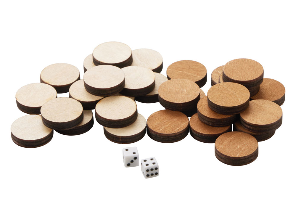 В комплект входят фишки из фанеры двух оттенков, гармонирующих с базовым цветом доски.
