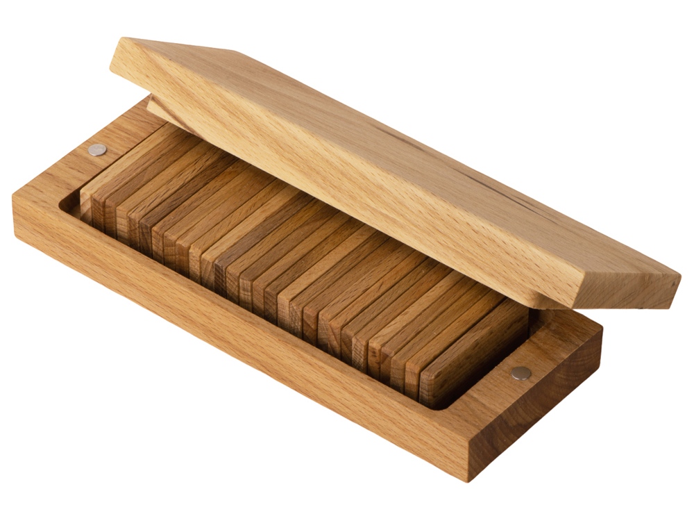 Комплект выполнен из натурального бука. Пропитка маслом обеспечивает долговечность и первозданный внешний вид набору.