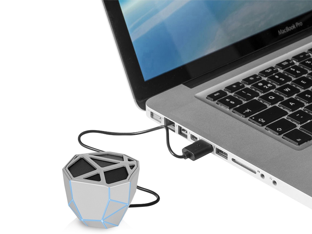 Портативная колонка Geo, серебристый + синяя подсветка, 967309