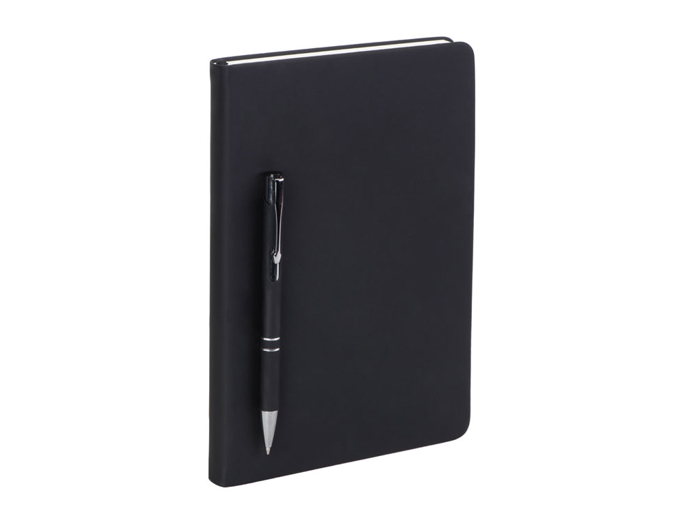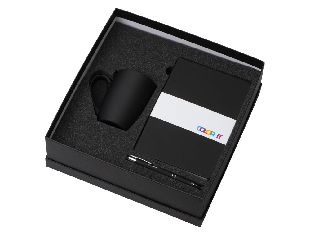 Подарочный набор с блокнотом С3, металлической ручкой и кружкой, черный , размер магнитная обложка, 350093.05