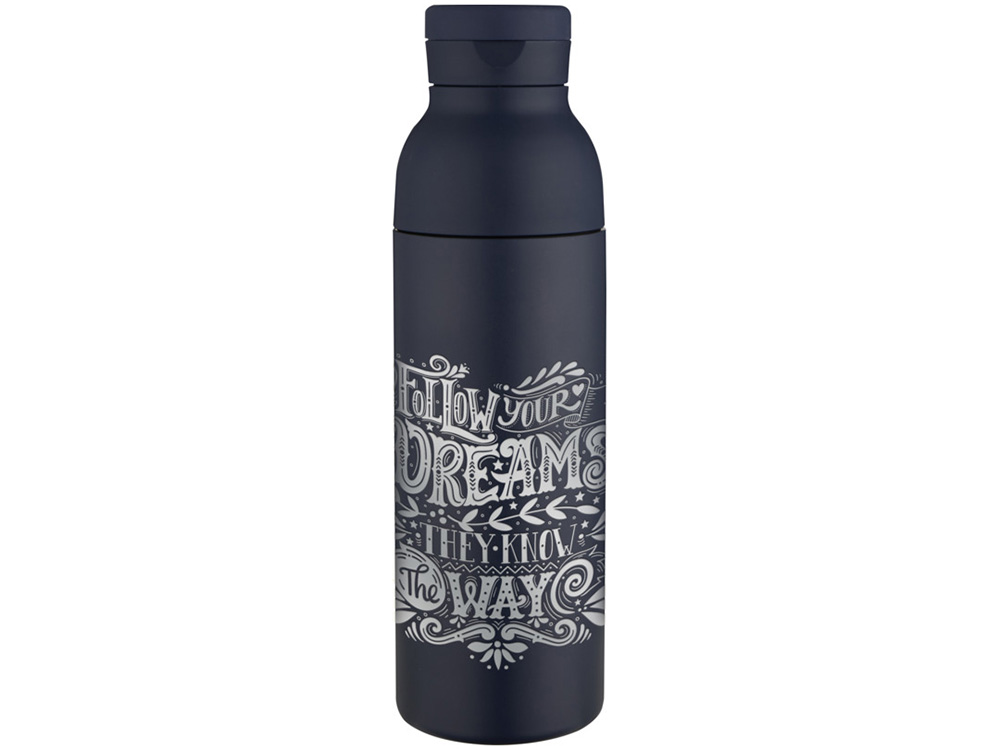 Illuminate бутылка для воды объемом 650 мл из переработанной нержавеющей стали RCS с двойными стенками и набором из 3 крышек - Синий Navy, 10089055