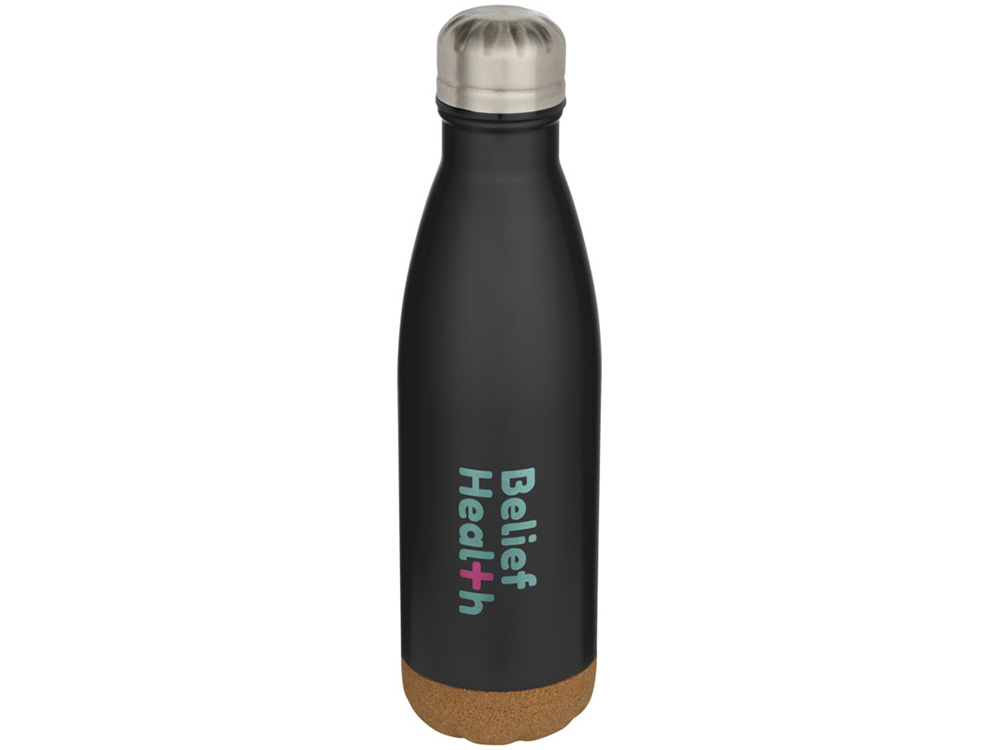 Бутылка для воды Cove из нержавеющей стали с двойными стенками и вакуумной изоляцией, объемом 500 мл, с пробковыми деталями - сплошной черный, 10089290