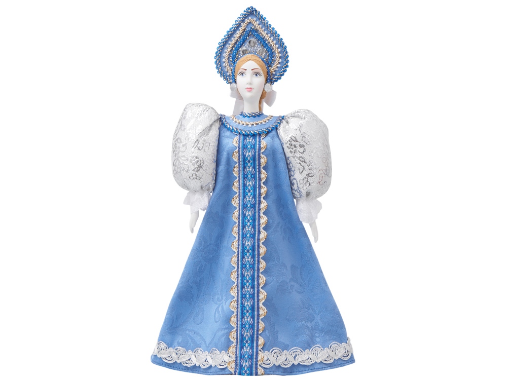 - Фарфоровая кукла в народном костюме ручной работы: расписной сарафан и кокошник с традиционной вышивкой воссоздают образ русской красавицы.