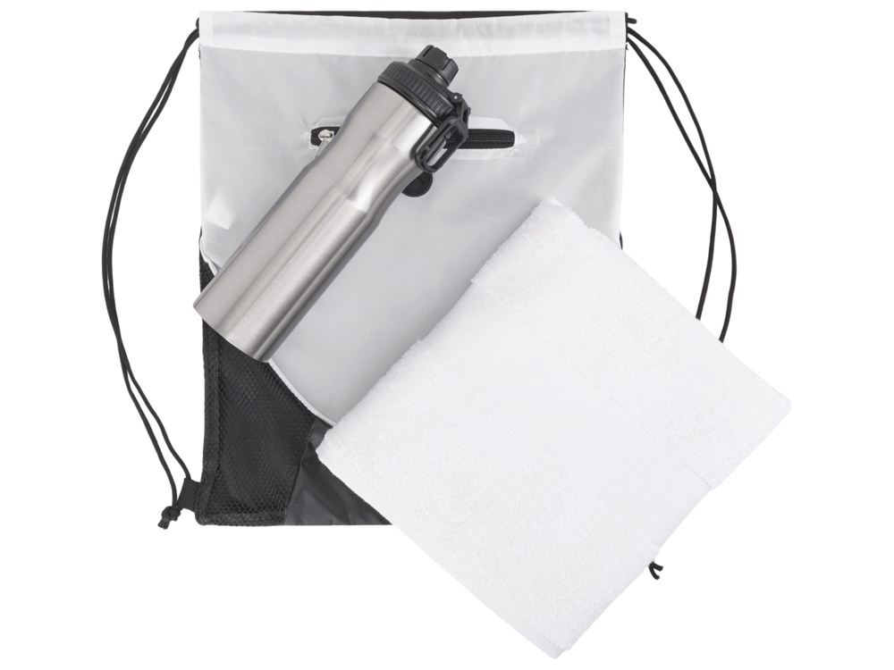 рюкзак- полиэстер 210D, полотенце- 100% хлопок, бутылка- нержавеющая сталь |