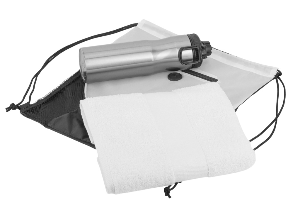 Спортивный набор со стальной бутылкой и полотенцем Advanced, белый, 700538.06