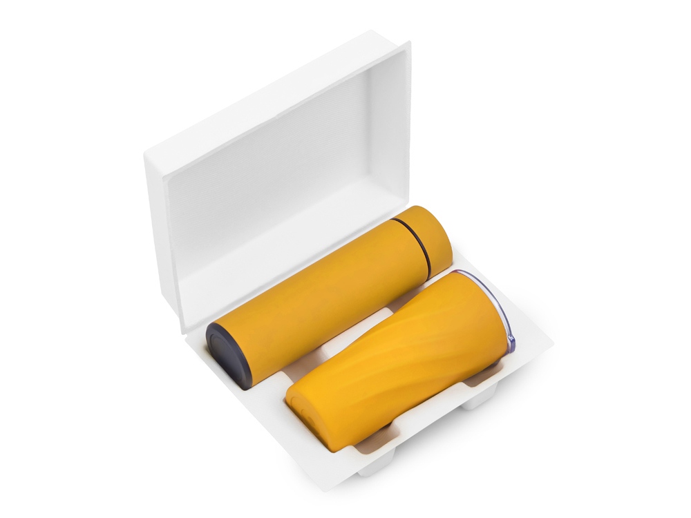 Подарочный набор FAMILY с термосом и термокружкой, желтый, 255137.12