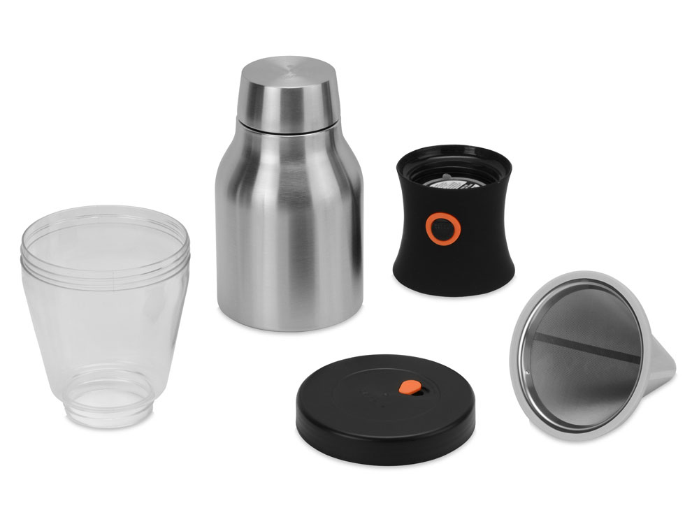 Верхняя часть кофеварки выполнена из тритана, абсолютно безопасного для человека, жаропрочного и легкого, нижняя — из нержавеющей стали 18/8 с никелем и хромом, устойчивой к коррозии. Многоразовый фильтр выполнен из нержавеющей стали. Нижний сосуд кофеварки можно отсоединить и взять с собой, закупорив герметичной крышкой, которая идет в комплекте. Двойные стенки нижней колбы и вакуумная изоляция позволят сохранить температуру в течение 12 часов.