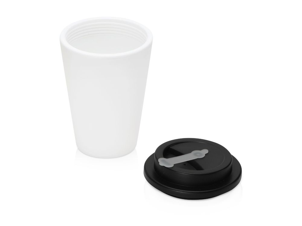 Пластиковый стакан Take away с двойными стенками и крышкой с силиконовым клапаном, 350 мл, белый/черный, 873426.07p