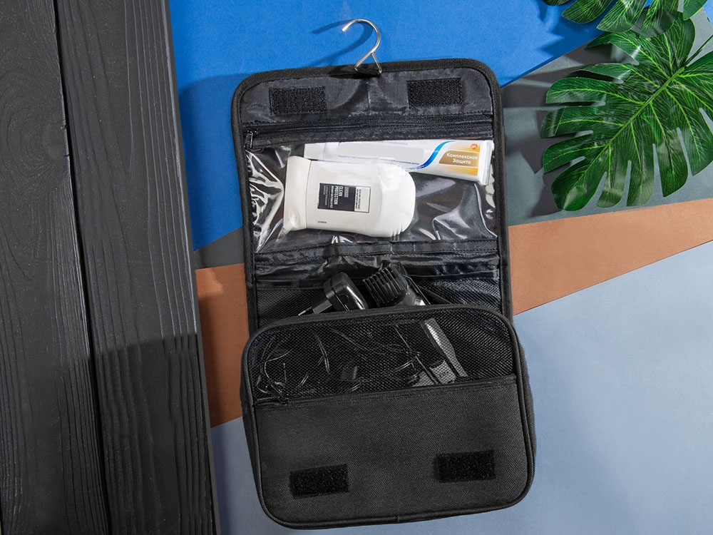- прозрачный карман из ПВХ для флаконов с жидкостями, который легко очистить