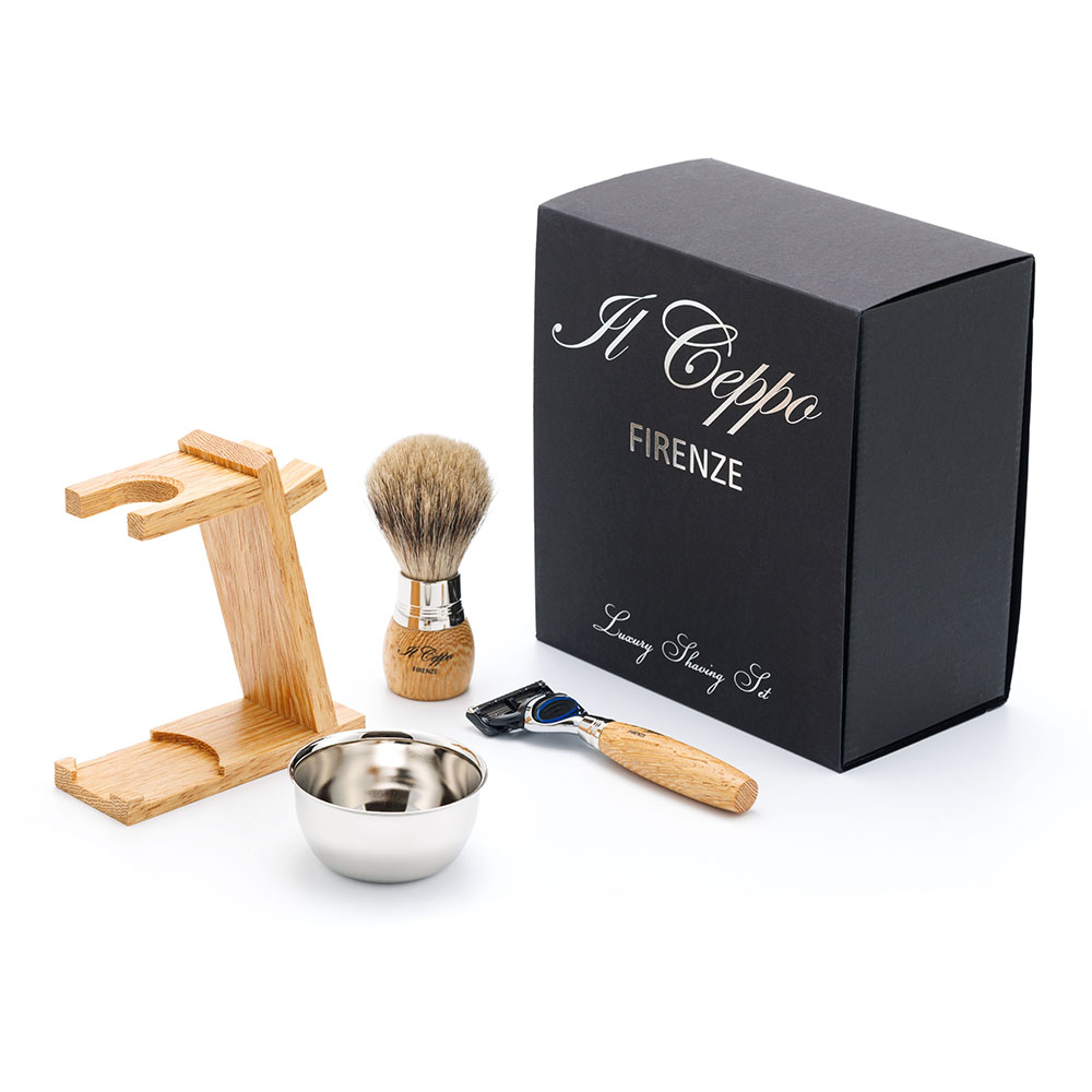 Бритвенный набор IL Ceppo: станок, помазок, подставка, чаша, венге/никелированная латунь, FUSION, натуральный ворс барсука BEST BADGER, SET-S11663FT