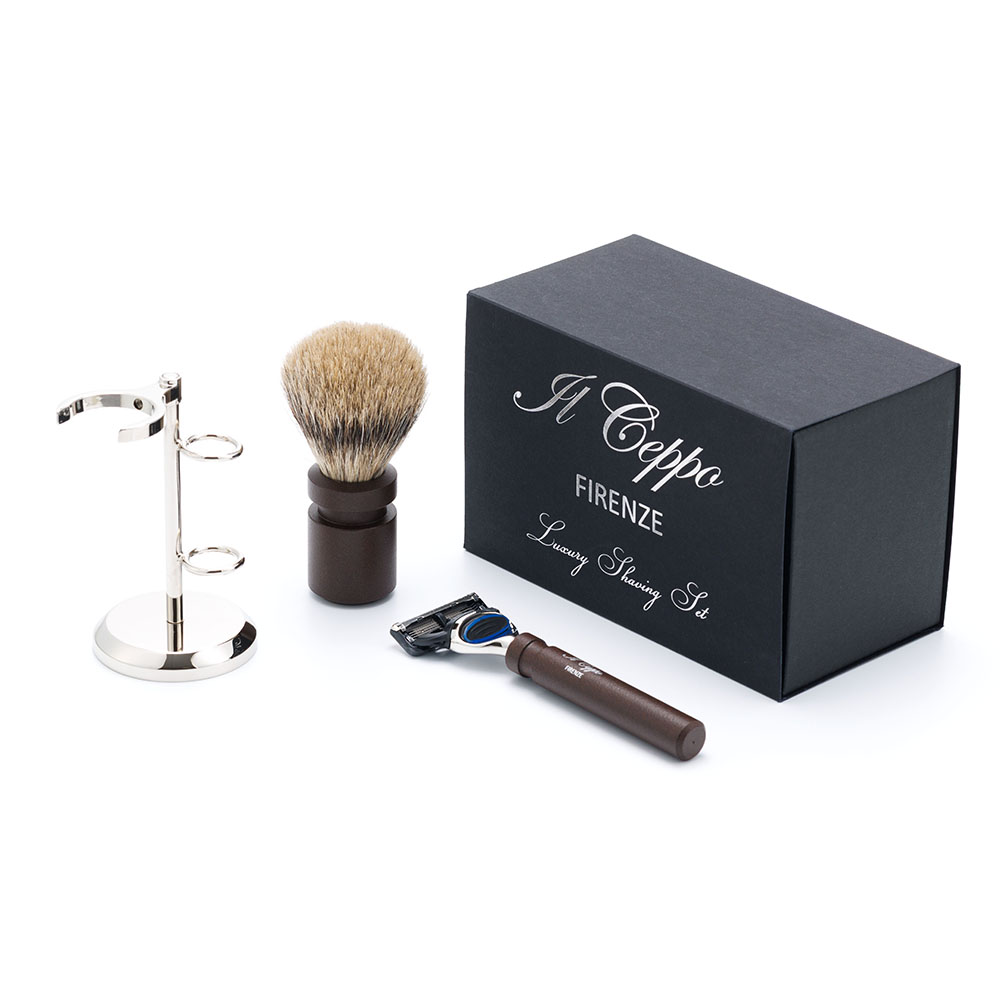 Бритвенный набор IL Ceppo: станок, помазок, подставка, алюминий/никелированная латунь, FUSION, натуральный ворс барсука BEST BADGER, SET-S11971FT
