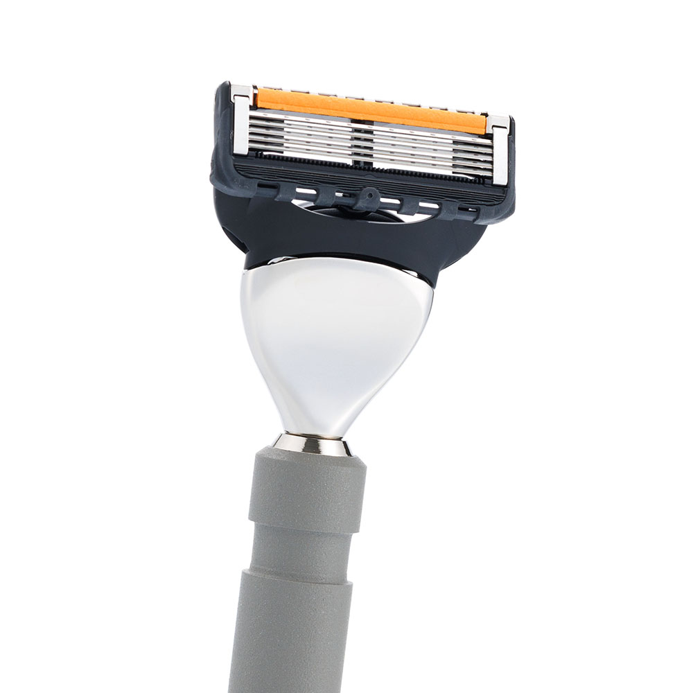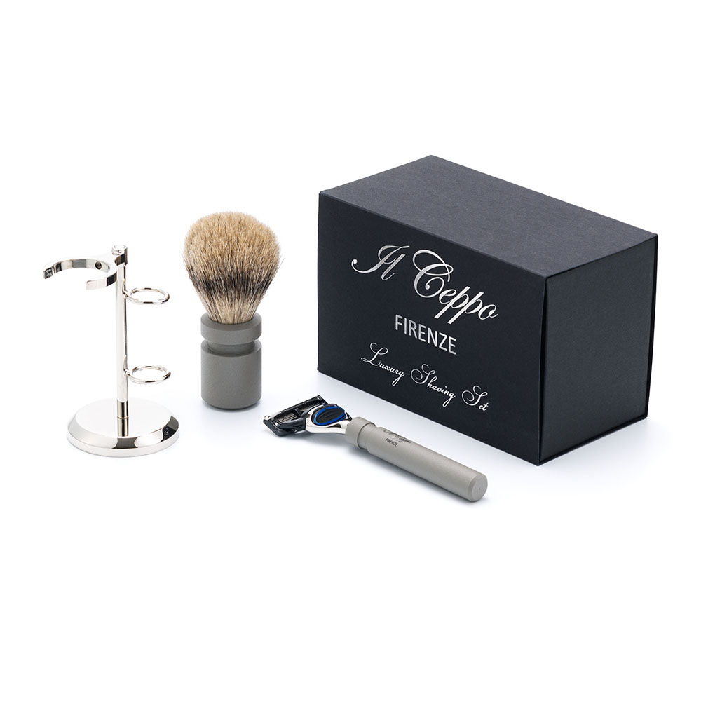 Бритвенный набор IL Ceppo:станок, помазок, подставка, алюминий/никелированная латунь, FUSION, натуральный ворс барсука BEST BADGER, размер узла M (22), SET-S11972FT