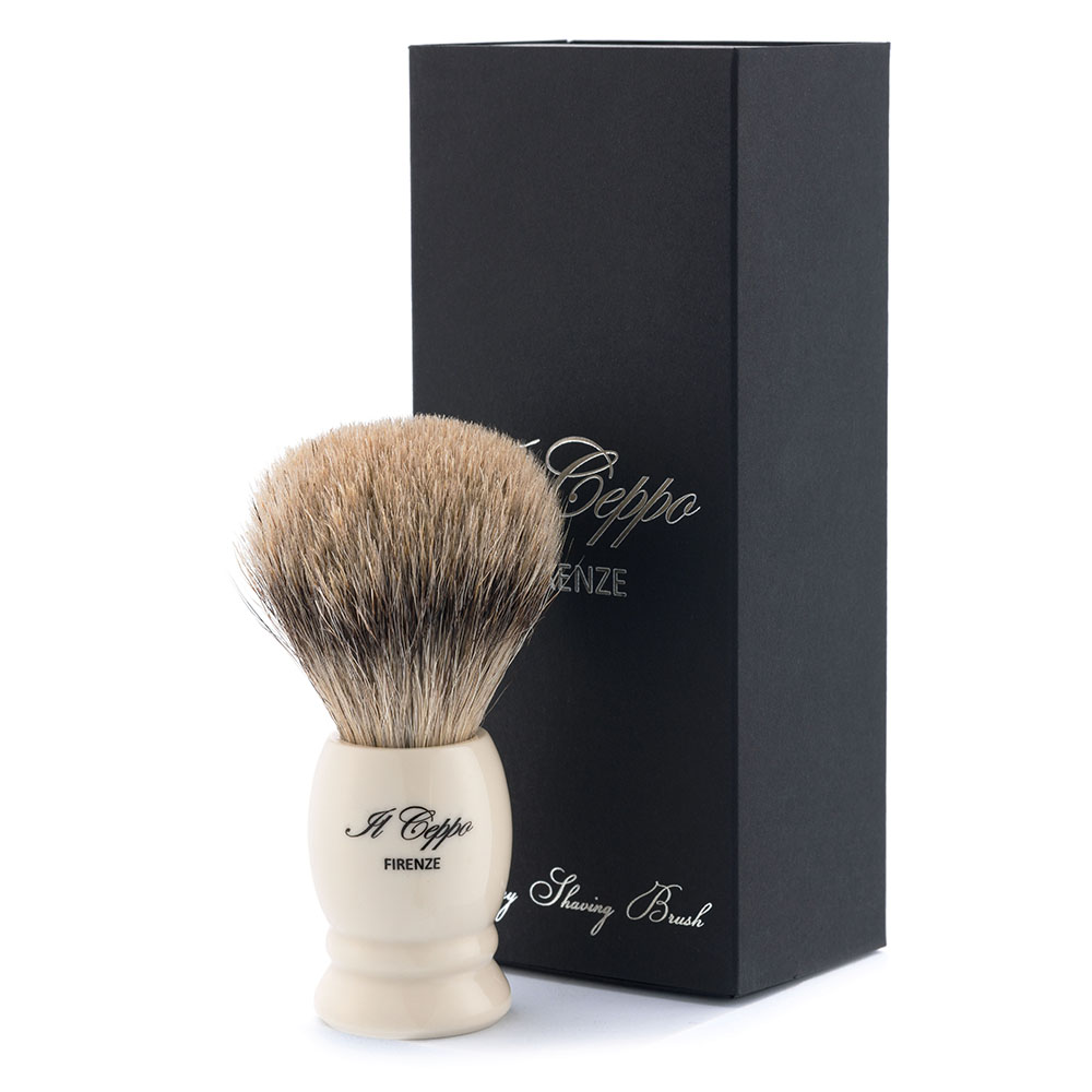 Помазок для бритья IL Ceppo, каучуковая смола, барсучий ворс, рукоять - цвет слоновой кости, PE309T