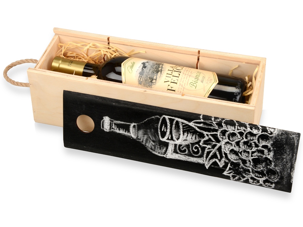 Пенал на 1 бутылку с грифельной крышкой, натуральный, 625056