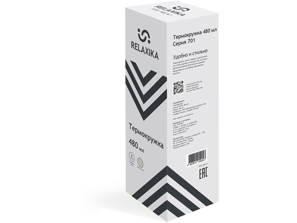 Термокружка Relaxika 701 (0,48 литра), белая (без лого) , размер 480, 810779