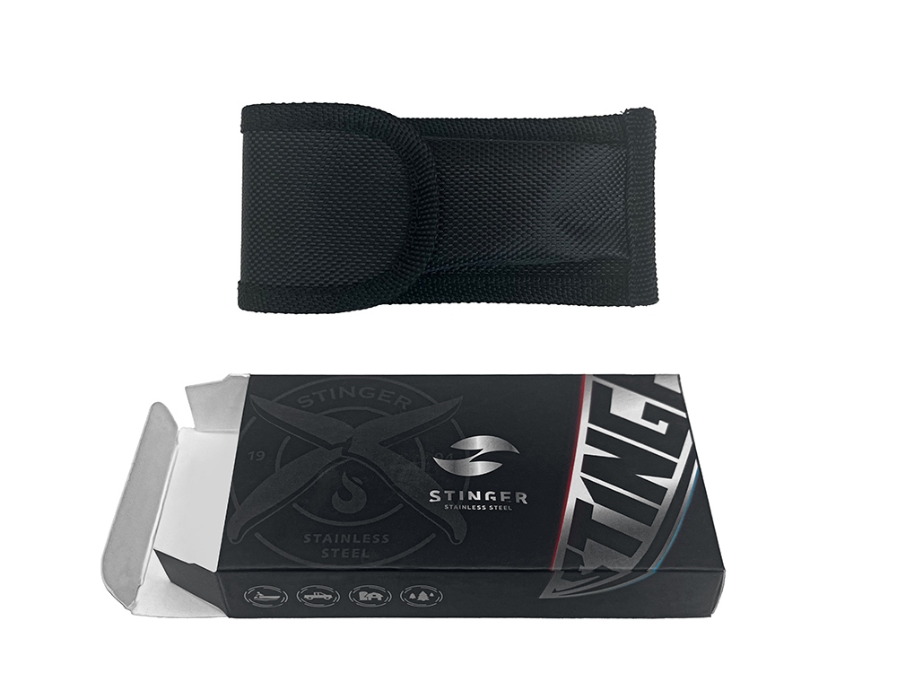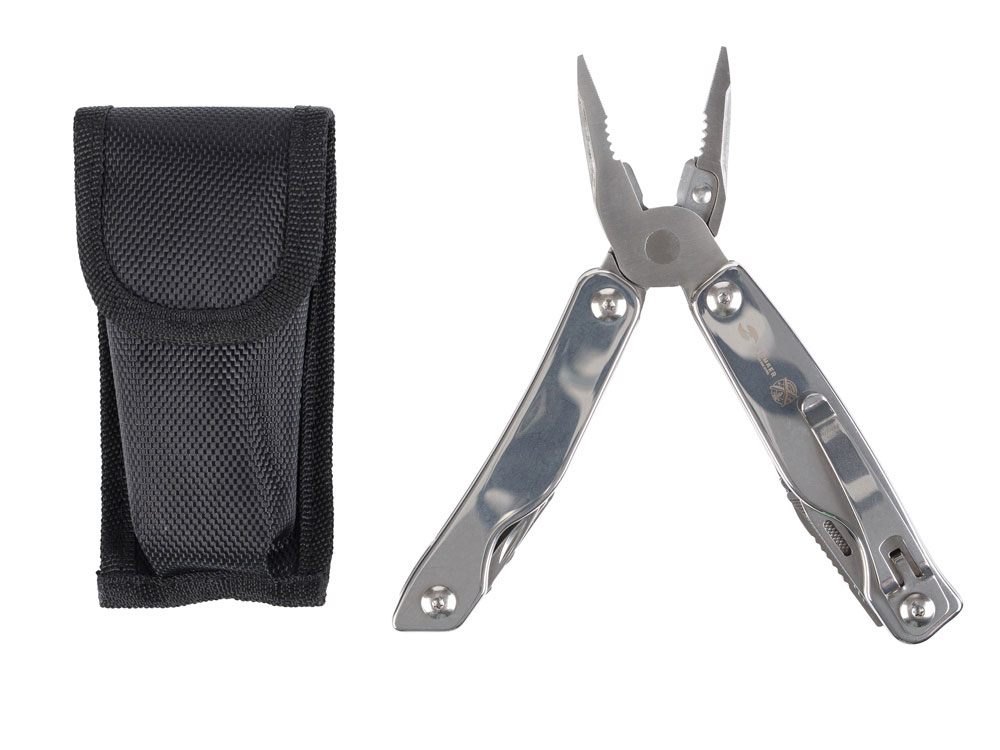 Мультитул Stinger, 100x45 мм, 11 функций, сталь, серебристый, в комплекте нейлоновый чехол, 441110