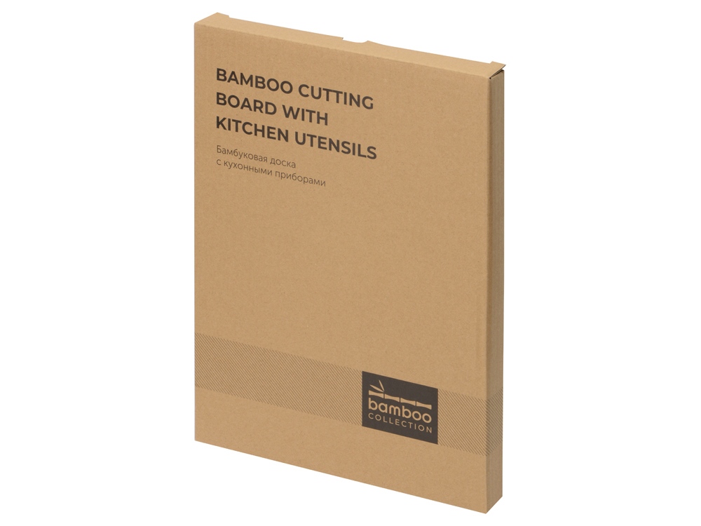 В комплекте скошенная лопатка и ложка с функцией вилки. На доске имеется прорезь для подвешивания доски.