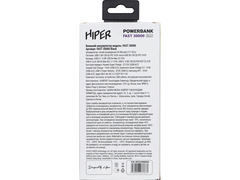 Портативный внешний аккумулятор FAST 30000 White, 521012