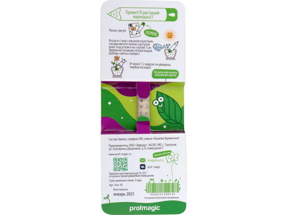 Принцип работы такой же, как и у больших карандашей: пишите карандашом до тех пор, пока не останется 1 см до капсулы. Когда он станет коротким, посадите его под углом, погрузив капсулу в землю не более, чем на 1 см. Поливайте и ухаживайте за ним, и уже через 15-25 дней базилик даст первые всходы.