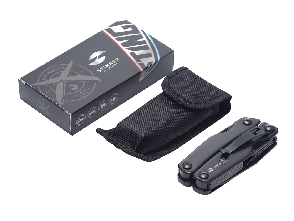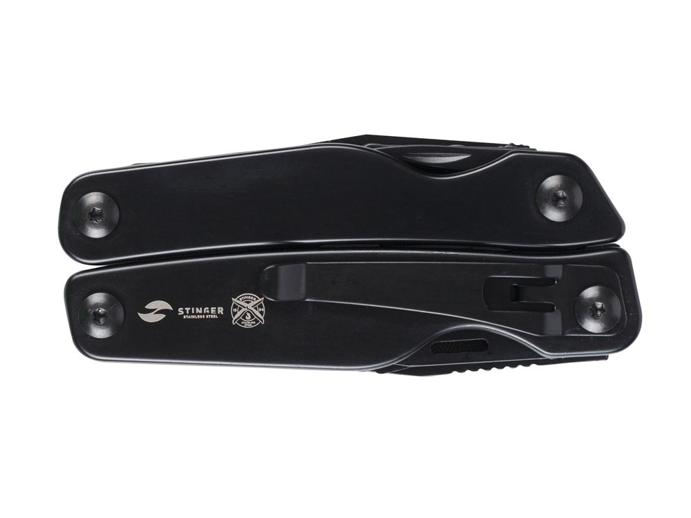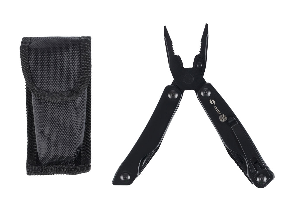 Мультитул Stinger, 100x40 мм, 11 функций, сталь, чёрный, в комплекте нейлоновый чехол, 441109