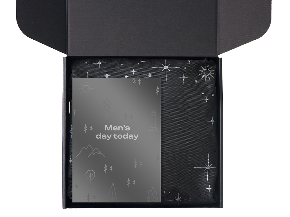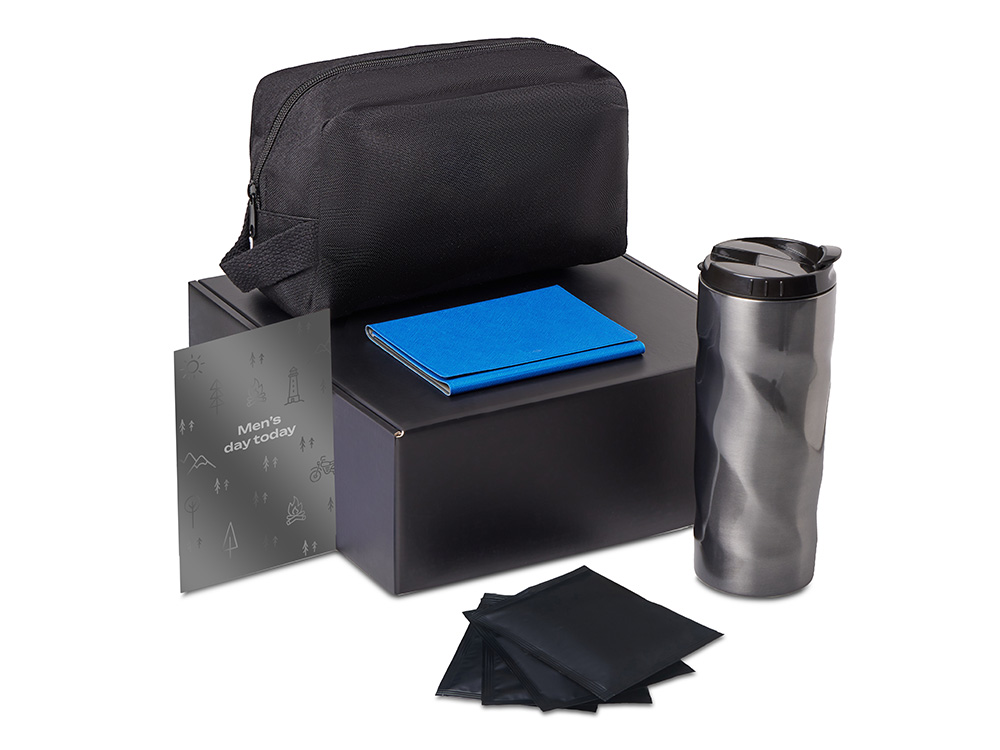 термокружка - нержавеющая сталь, пластик; кофе в дрип пакете - пластик; обложка для паспорта - полиуретан; косметичка - переработанный оксфорд; мешок - нетканый материал (спанбонд) |