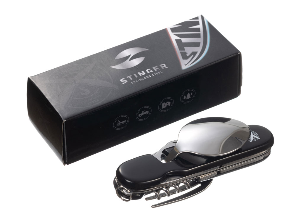 Нож перочинный Stinger, 109 мм, 8 функций, материал рукояти: АБС-пластик (чёрный), 441133