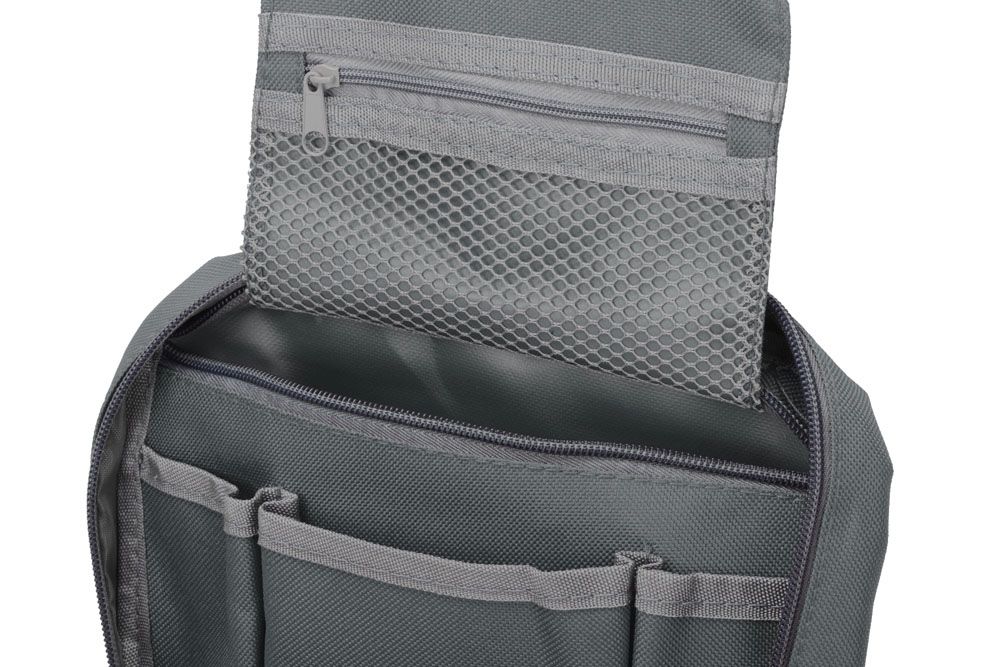 • Вместительное пространство с двумя большими отделениями и несколькими карманами дает возможность эргономично распределить весь дорожный арсенал косметических и туалетных принадлежностей.