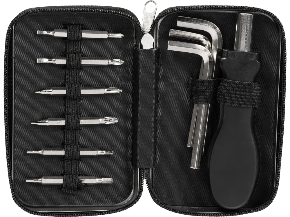 • 3 шестигранных ключа, 6 двухсторонних насадок с битами и ручки к ним