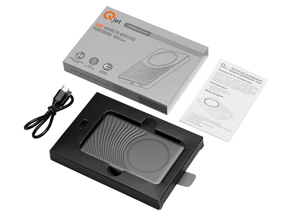 Магнитный беспроводной внешний аккумулятор, QC/PD Сёрф, 10000 мАч, серый, 590162