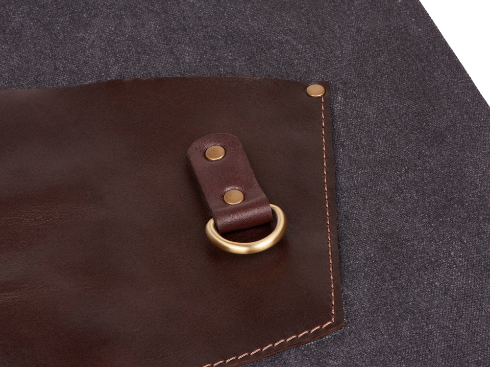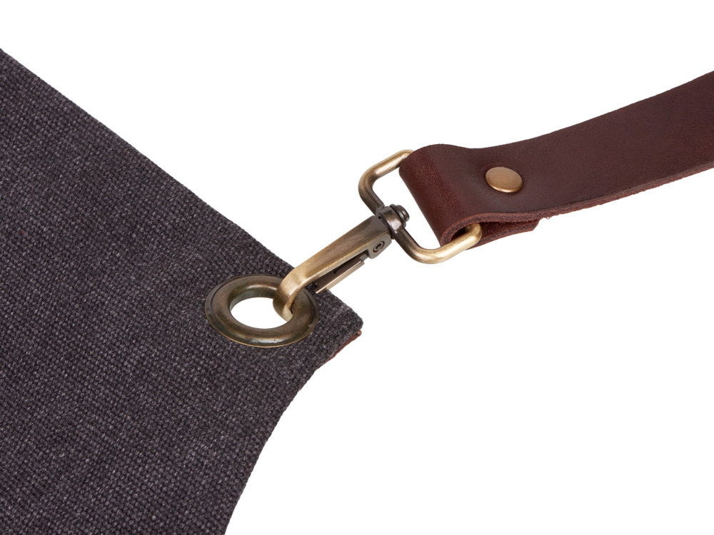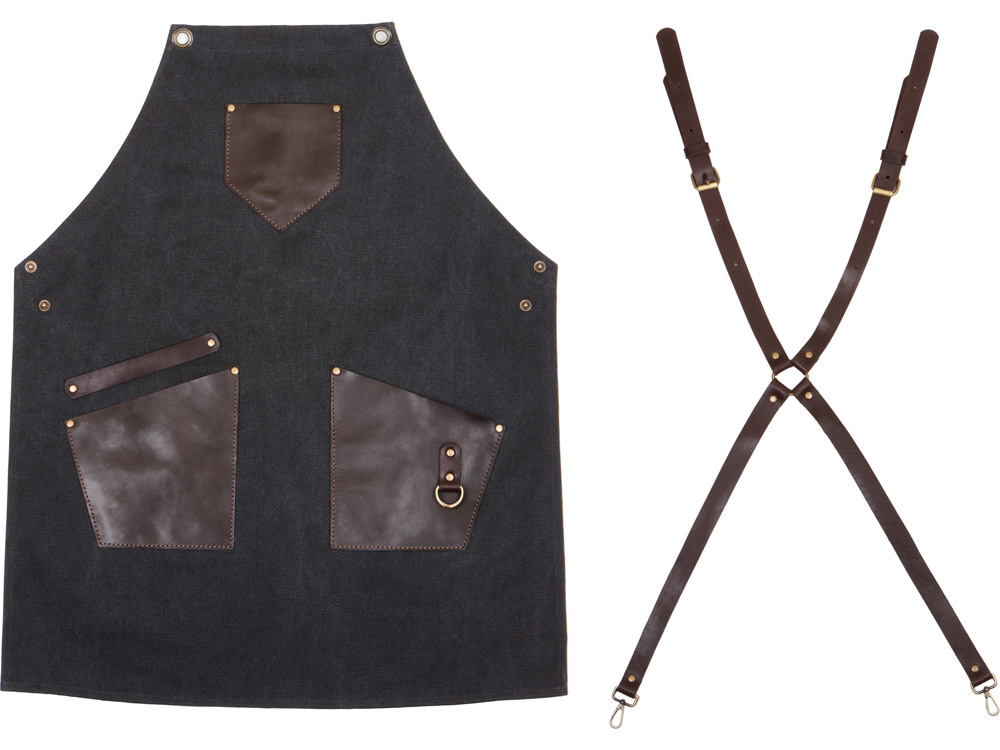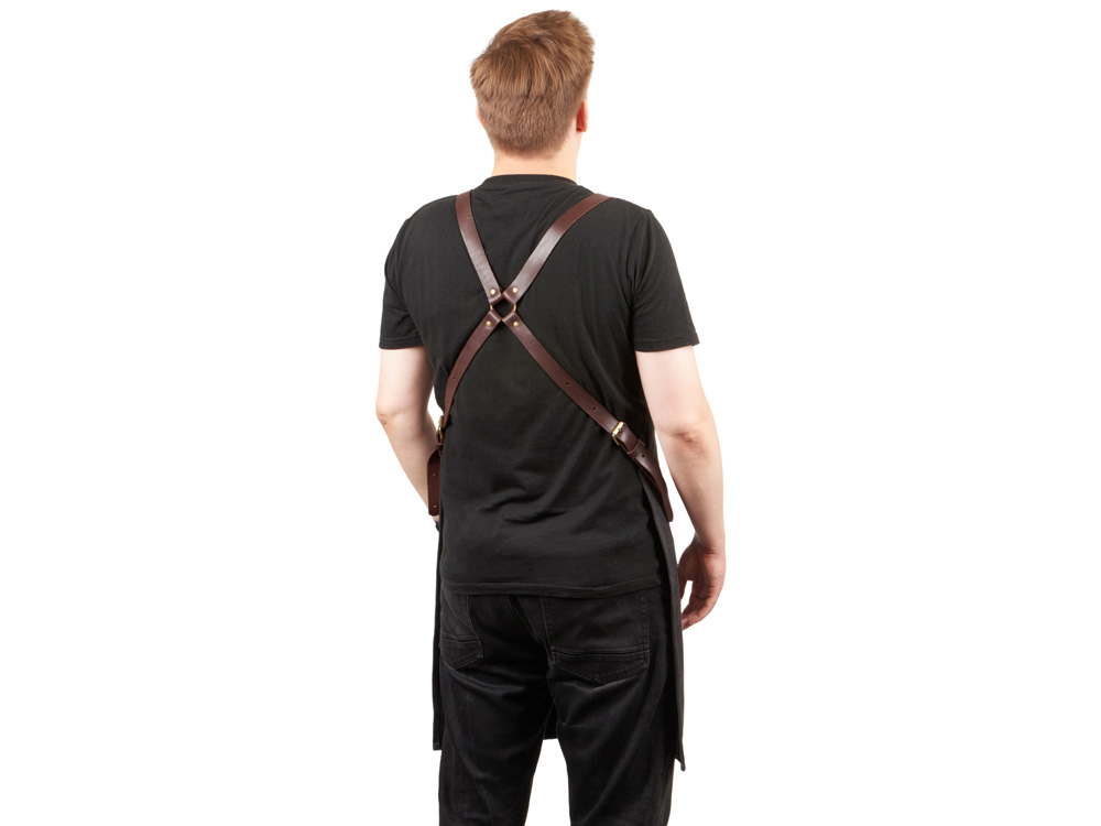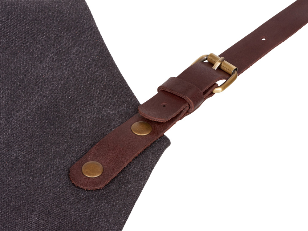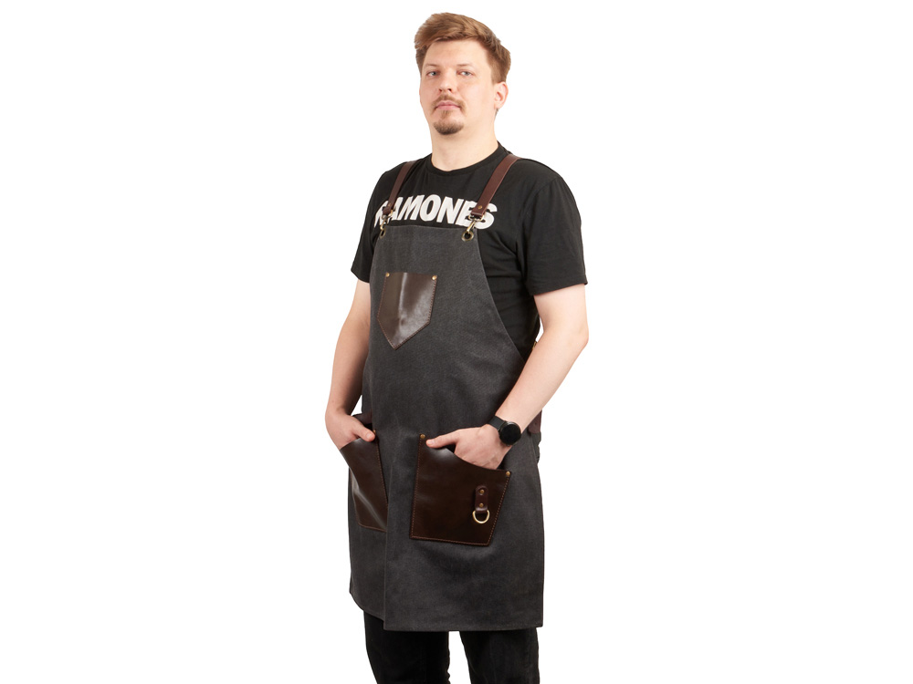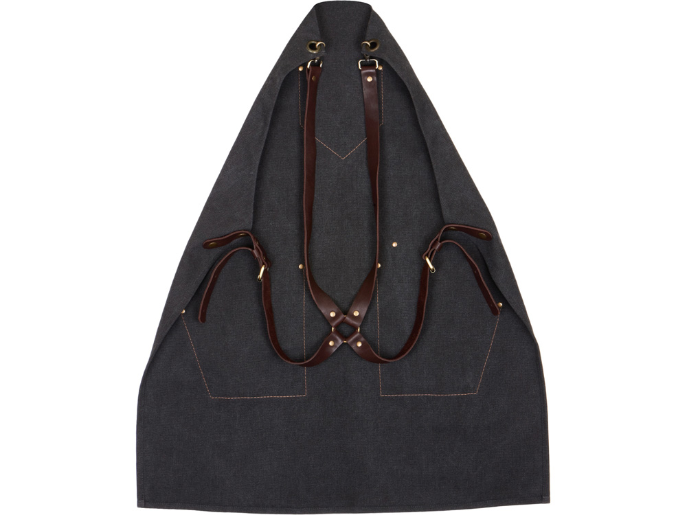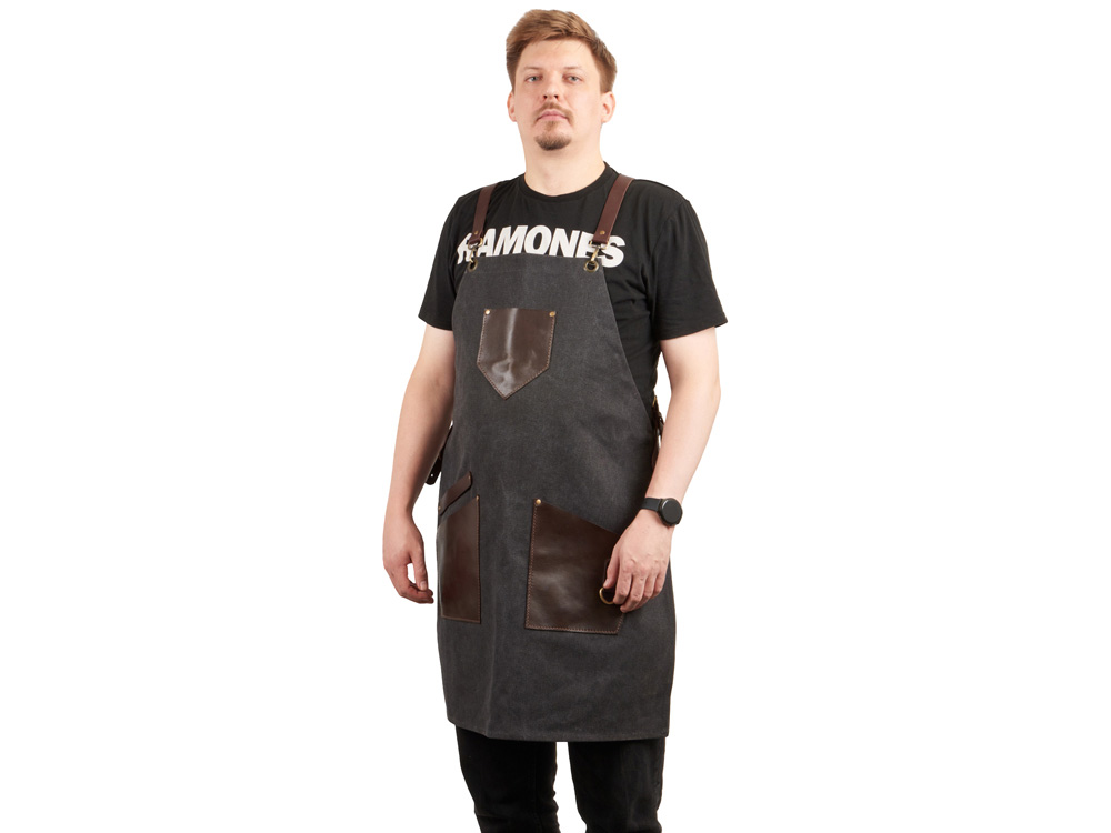 Фартук из канваса с ремнями из натуральной кожи, материал: канвас смесовый, плотность 450 гр/м, натуральная кожа КРС, цвет черный, коричневый темный, 250660