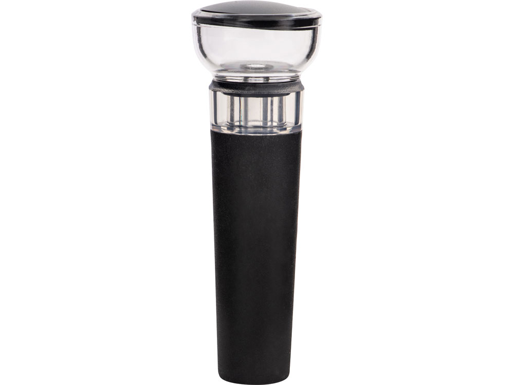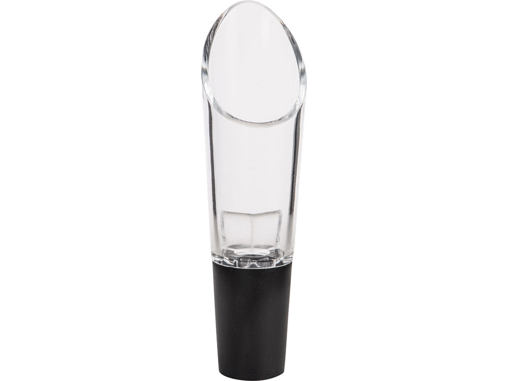 Аэратор вставьте в горлышко бутылки и пролейте через него вино в бокал - вуаля, вино мгновенно насытилось кислородом, да еще и без одной пролитой на скатерть капли!