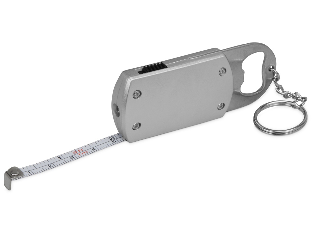 Брелок-открывалка с рулеткой и фонариком Open, серебристый, 716330