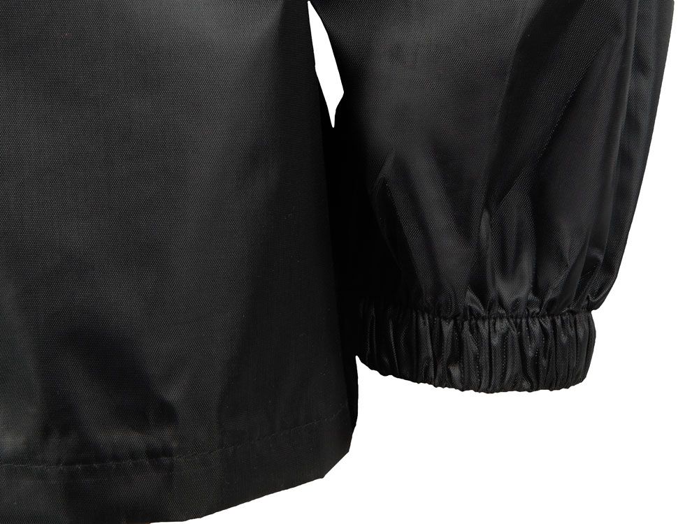 Рукав реглан обеспечивает комфортную посадку, не сковывает движения, что позволяет использовать дождевик для активного отдыха, а резинка по низу помогает сохранить тепло, препятствуя попаданию влаги и защищая от ветра.