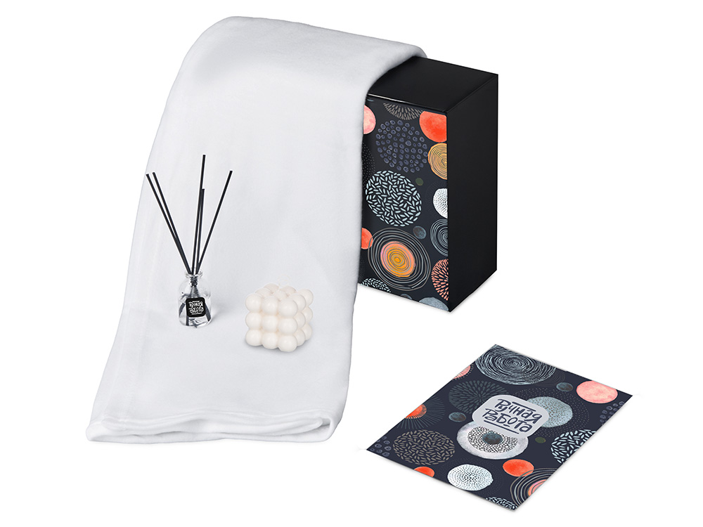 Подарочный набор с пледом, свечой и диффузором, белый, 210128.06