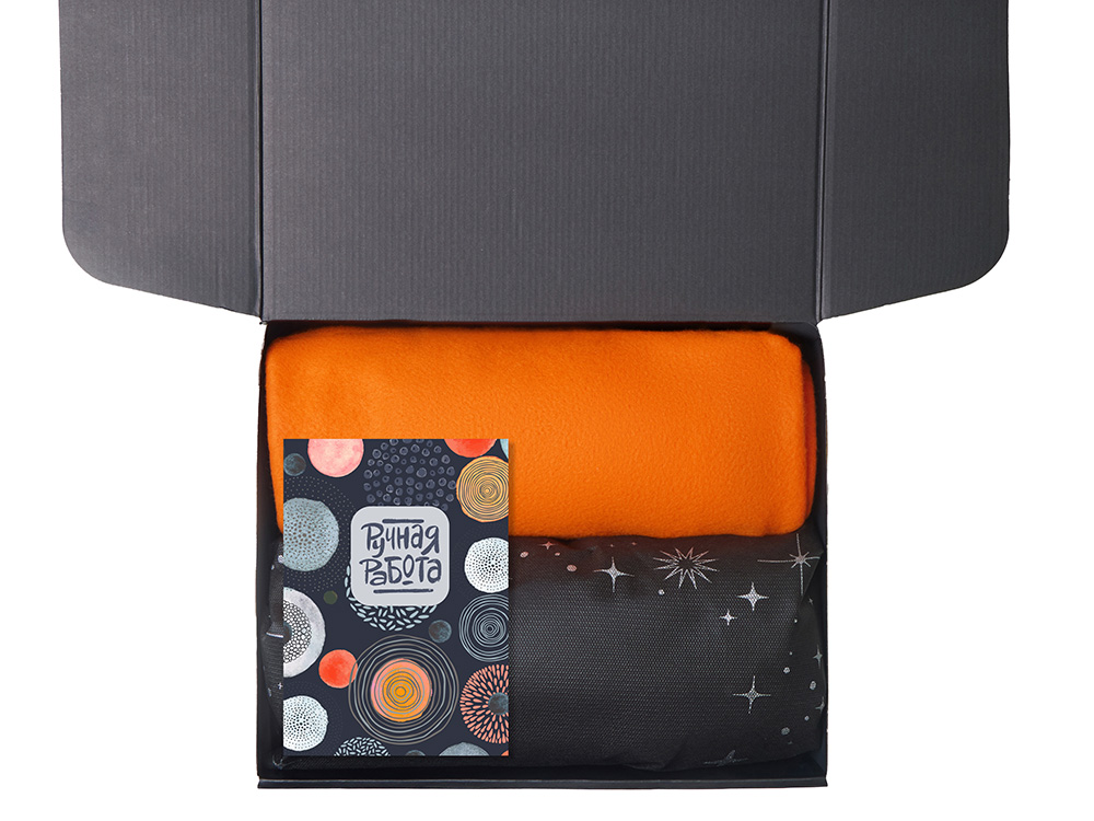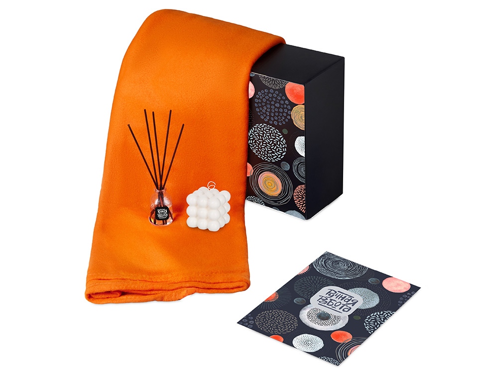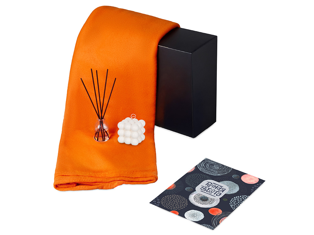 Подарочный набор с пледом, свечой и диффузором, оранжевый, 210128.08