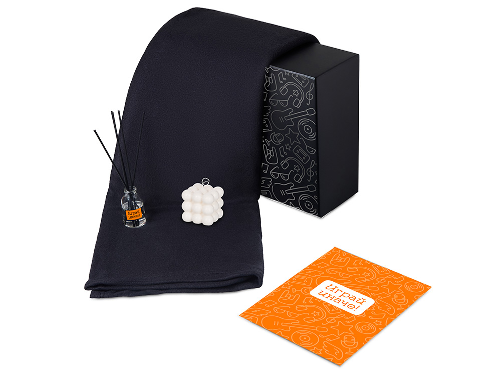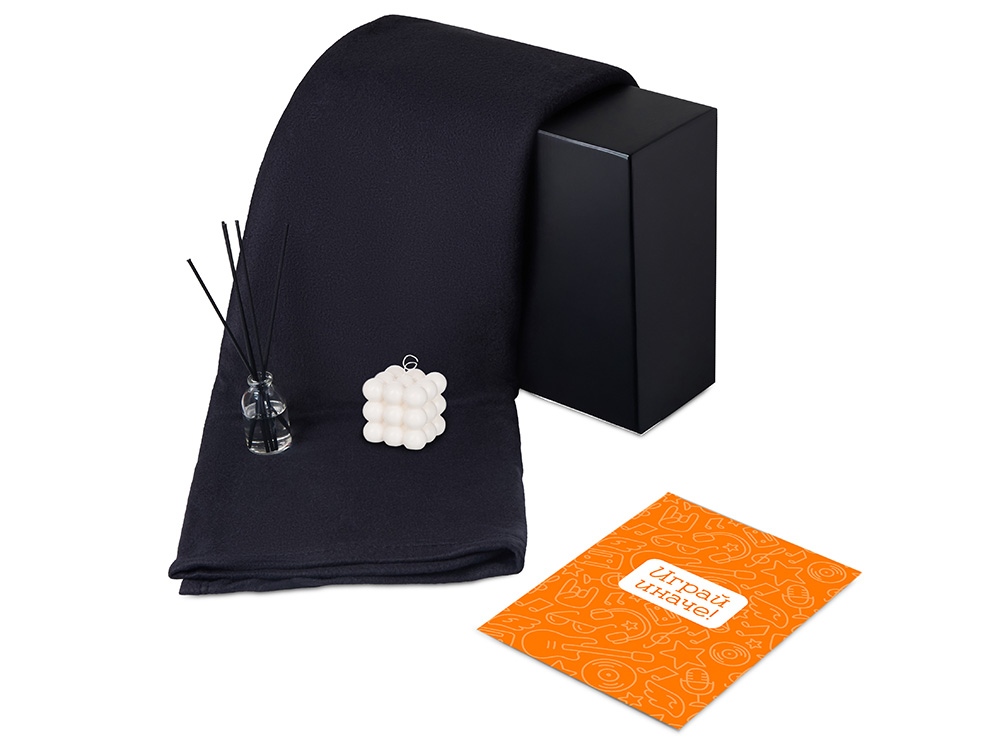 Подарочный набор с пледом, свечой и диффузором, черный, 210128.07