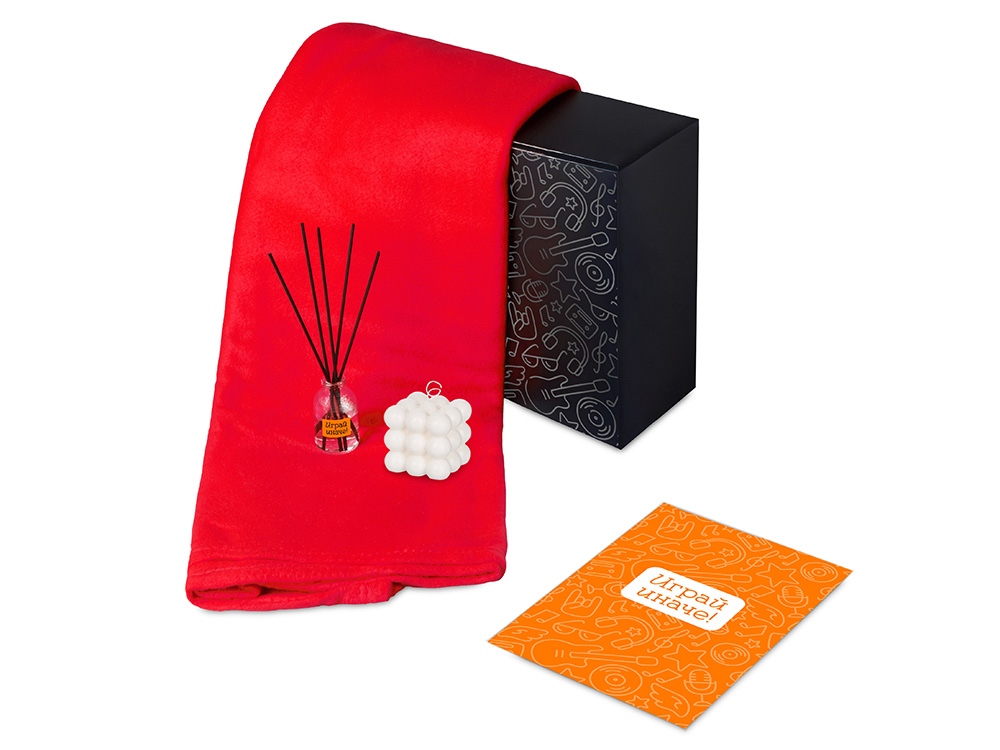 Подарочный набор с пледом, свечой и диффузором, красный, 210128.01
