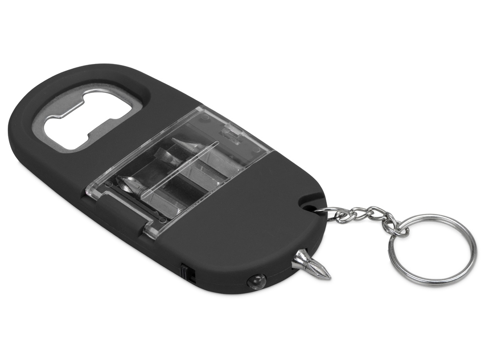 Брелок-открывалка с отвертками и фонариком Uni, софт-тач, черный (Р), 716327p