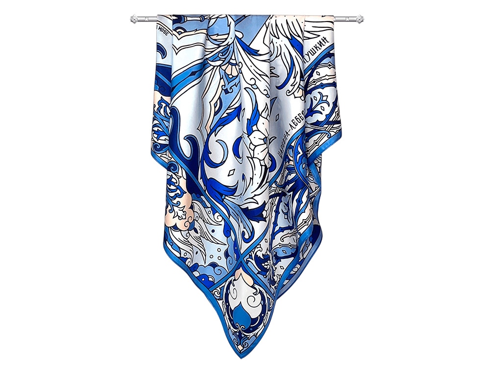 Платок с прекрасной Царевной Лебедь подойдет изящным и романтичным натурам, предпочитающим классику и традиционный русский стиль. Он станет деликатным дополнением как повседневного, так и вечернего образа утонченной леди.