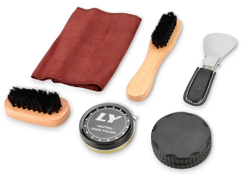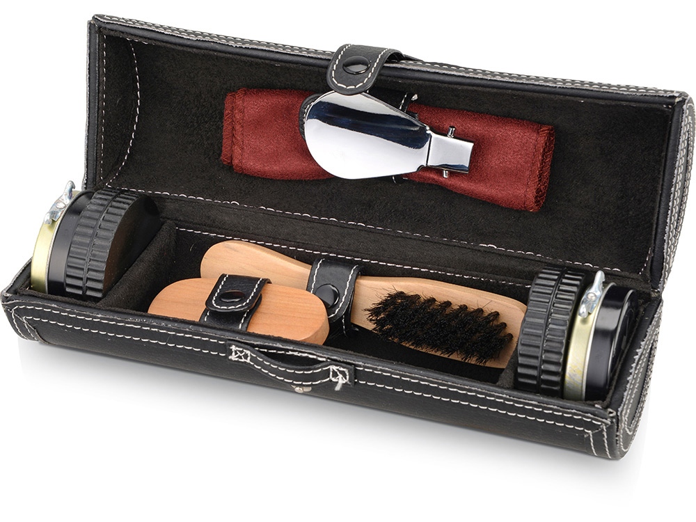 черный крем, коричневый крем, 2 губки, 2 щетки, ложка для обуви, салфетка |