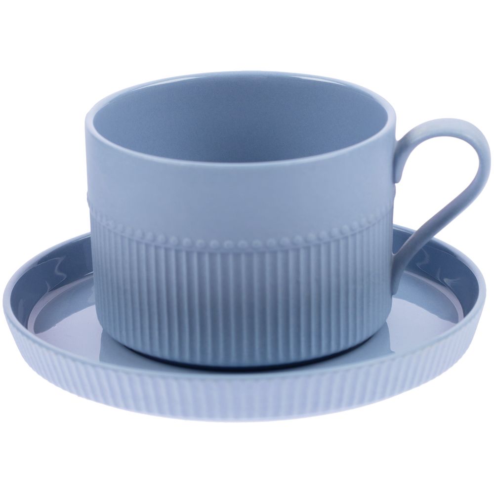 Орнамент корпуса кружки и высокого бортика блюдца напоминает изящные каннелюры — вертикальные желобки на колонне. Это добавляет всему изделию изысканности и стилистической завершенности, благородства и античной строгости.