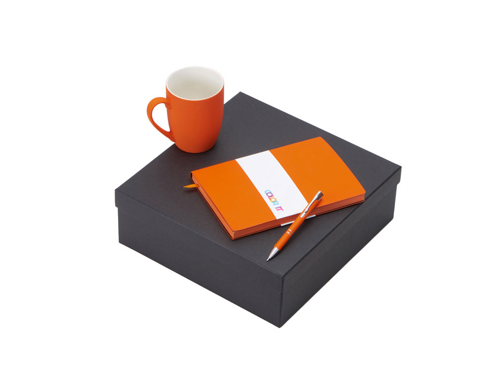Подарочный набор с блокнотом С1, металлической ручкой и кружкой, оранжевый , размер гибкая обложка, 350091.05