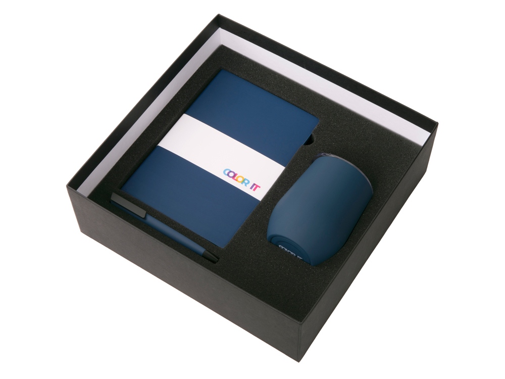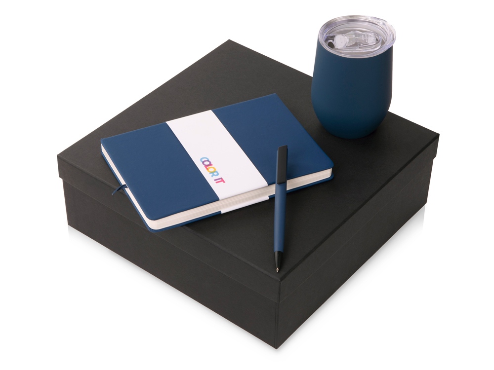 Подарочный набор c блокнотом C3, ручкой и термокружкой, темно-синий , размер магнитная обложка, 209841