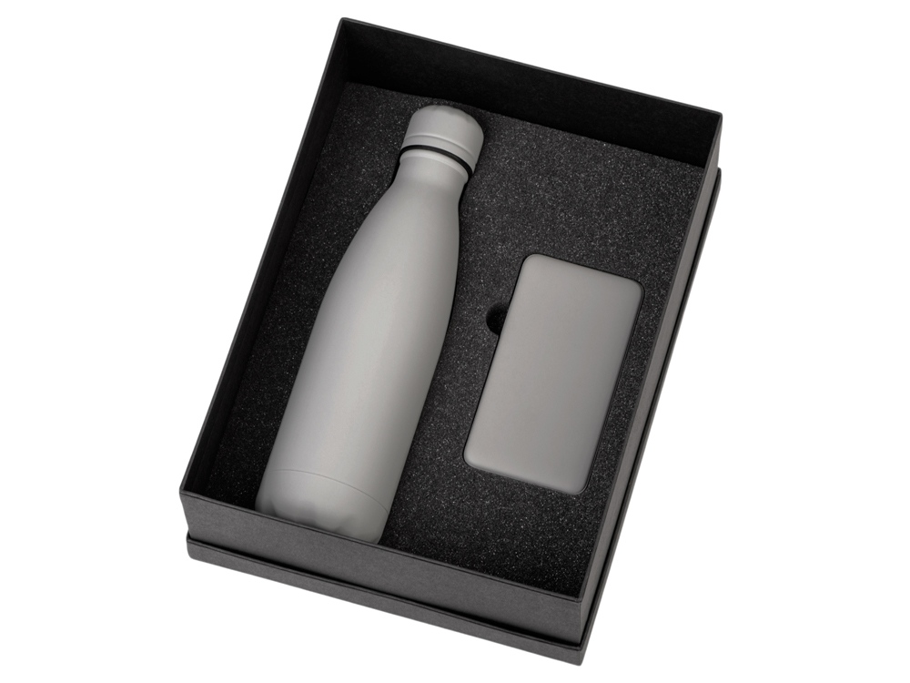 повербанк- пластик с покрытием софт-тач, термобутылка- нержавеющая cталь с покрытием софт-тач |