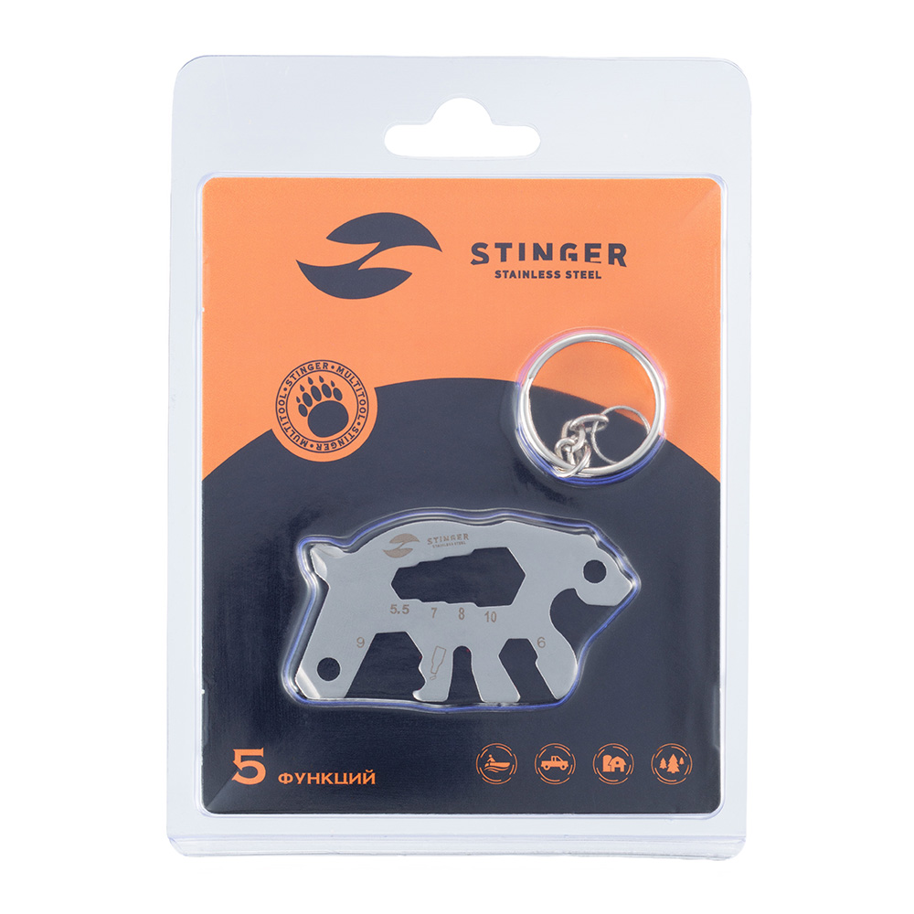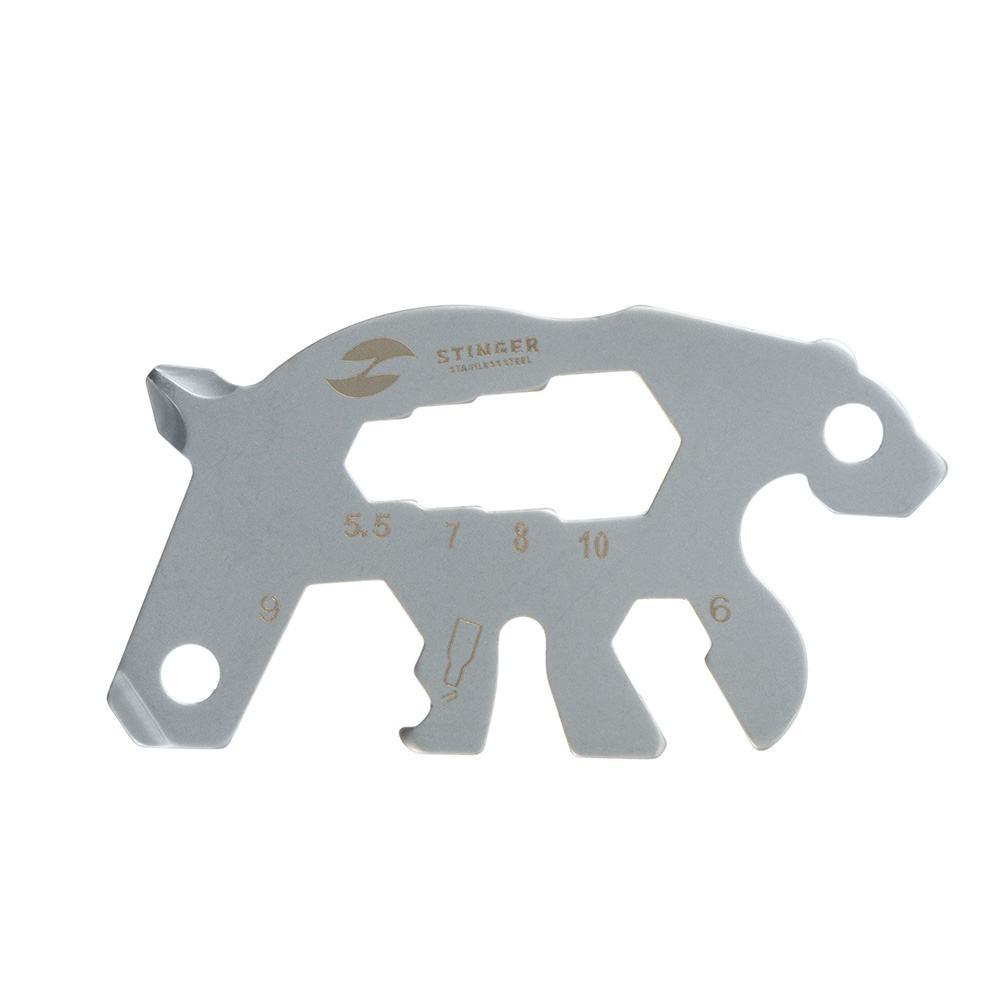 Мини-мультитул карманный Stinger, 55 x 35 мм, 5 функций, медведь, нержавеющая сталь, серебристый, в блистере, BER028-SB