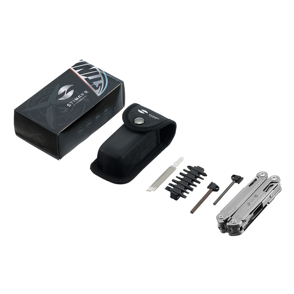 Мультитул Stinger, 113 х 22 мм, 21 функция, сталь, серебристый, в картонной коробке, в комплекте нейлоновый чехол, MT-GHK21