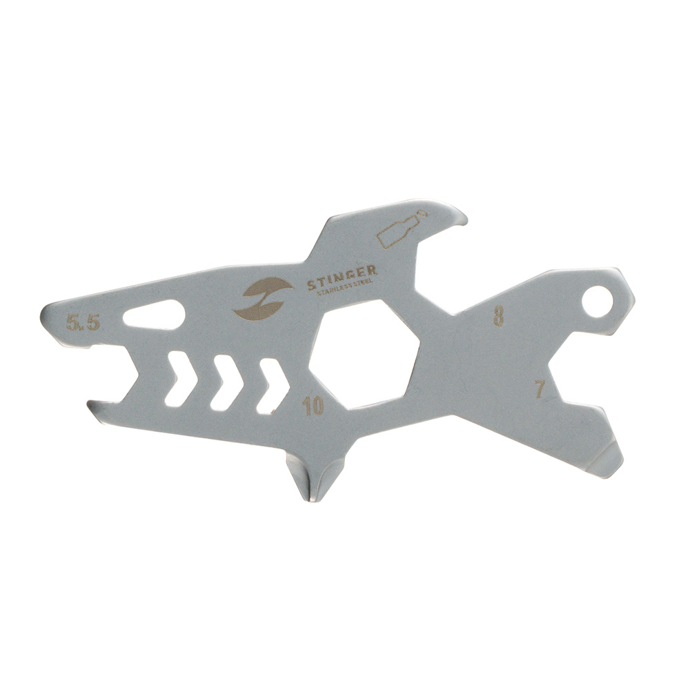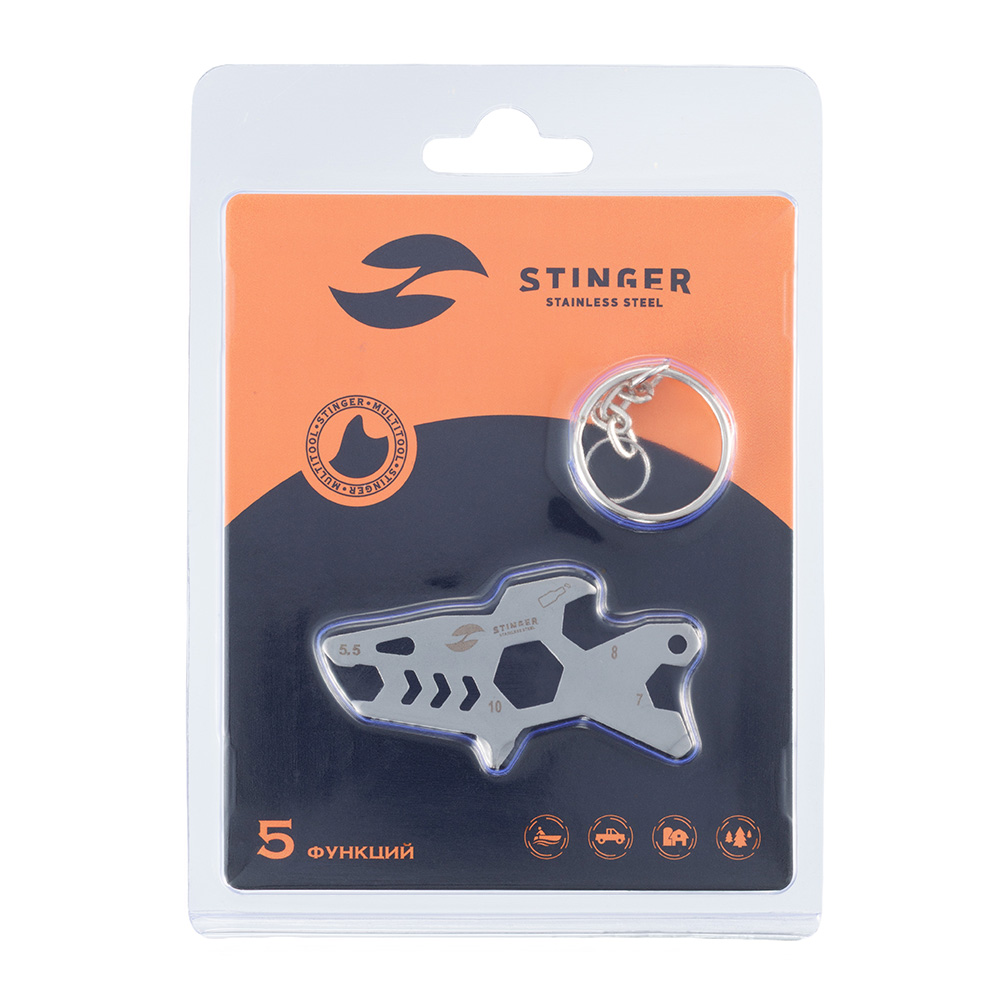 Мини-мультитул карманный Stinger, 60 x 31 мм, 5 функций, акула, нержавеющая сталь, серебристый, в блистере, SRK037-SB
