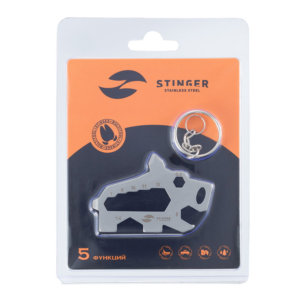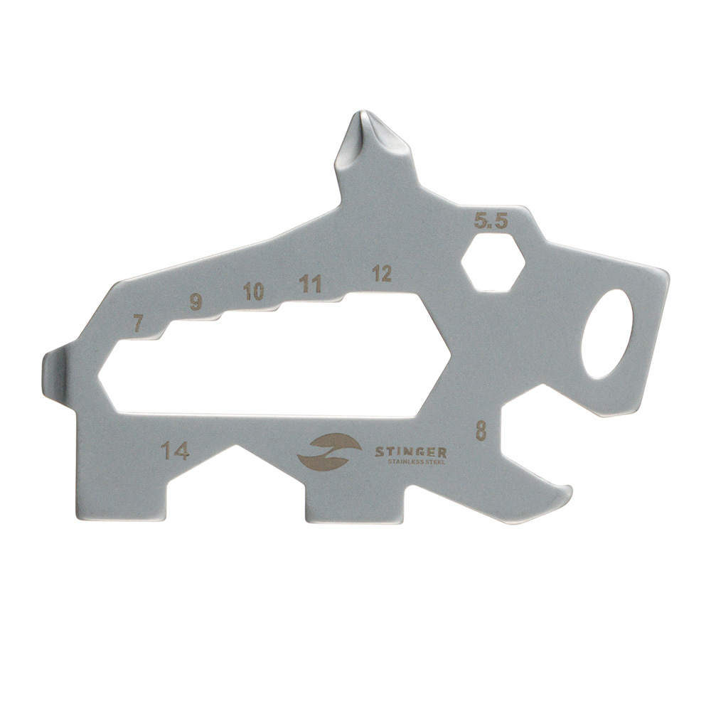 Мини-мультитул карманный Stinger, 61 x 35 мм, 5 функций, кабан, нержавеющая сталь, серебристый, в блистере, BOR029-SB