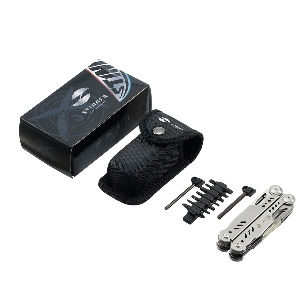 Мультитул Stinger, 110 х 27 мм, 23 функции, сталь, серебристый, в картонной коробке, в комплекте нейлоновый чехол, MT-GHK23-2B